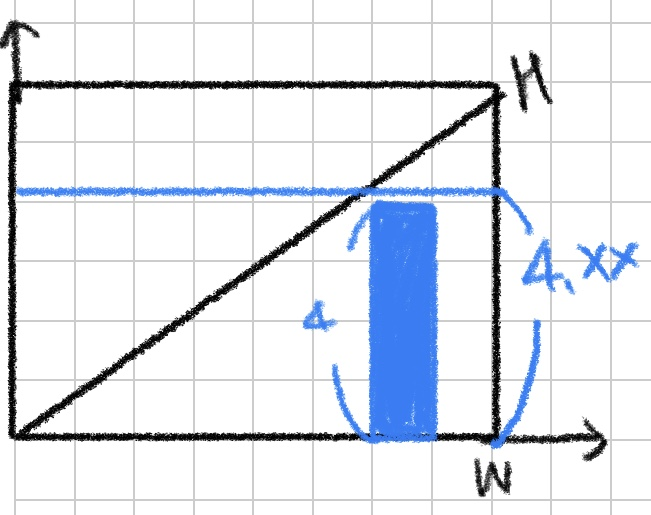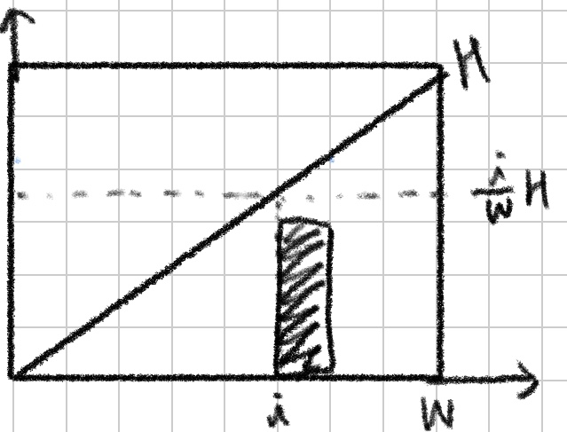 좌표에 그렸을때, i번째 위치의 height는H*i/W가 된다. 이때, 남는 멀쩡한 정사각형은 H*i/W의 정수부분임을 알 수있다.